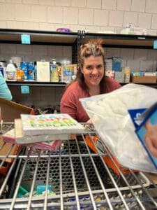 Team members worked to stock shelves that were then made available to community members. The department also spent time filling bags with smaller quantities of cups, napkins, and plastic silverware.